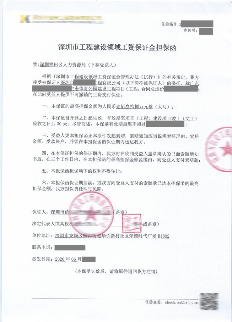 关于福田区工程建设领域工资保证金保函接收相关工作的通知