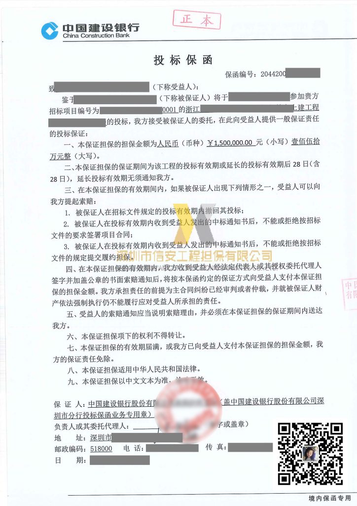 浙江保函担保金额150万