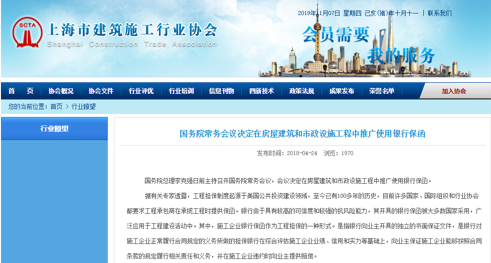 据有关专家透露,工程担保制度起源于美国公共投资建设领域,至今已有100多年的历史,目前许多国家、国际组织和行业协会都要求工程承包商在承揽工程时提供保函。银行由于具有较高的可信度和较强的抗风险能力,其开具的银行保函被大多数国家采用,广泛应用于工程建设活动中。其中,施工企业银行保函作为工程担保的一种形式。是指银行向业主开具的独立的书面保证文件,是银行对施工企业正常履行合同规定的义务所做的担保银行在综合评估施工企业业绩、信用和实力等基础上,向业主保证施工企业能够按照合同条款的规定履行相关责任和义务,并在施工企业违约时向业主提供赔偿。