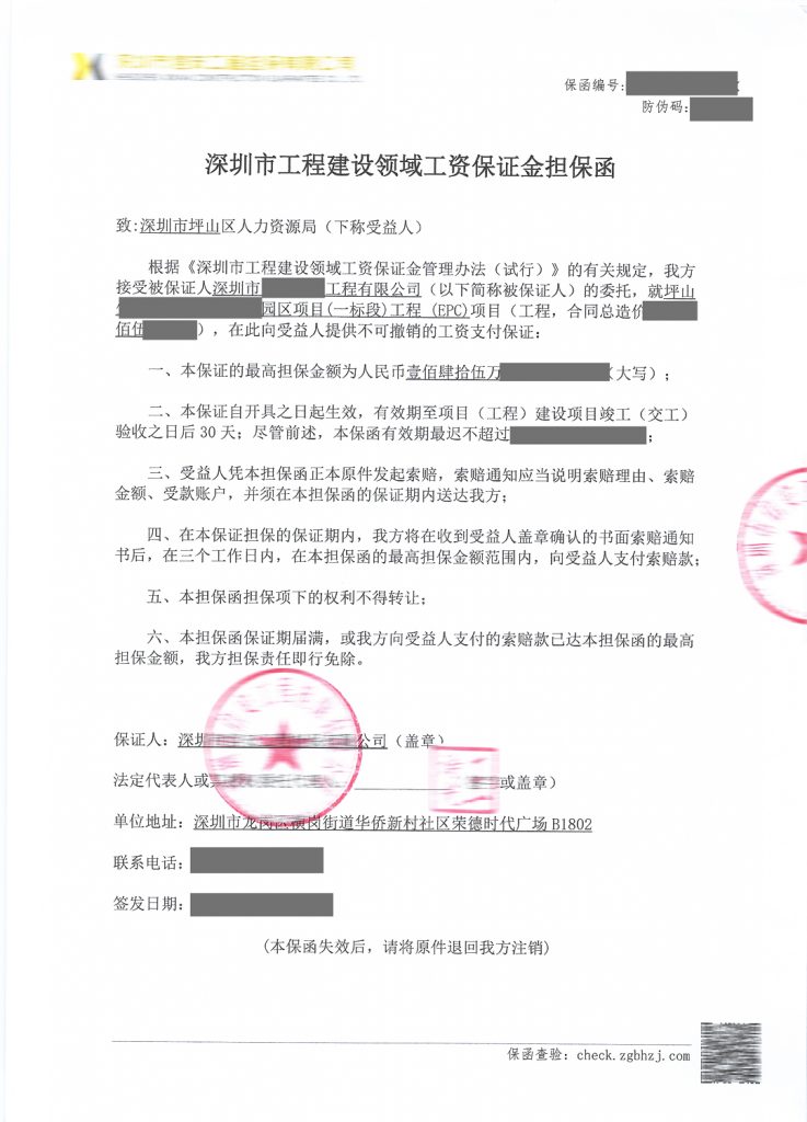 根据《深圳市人力资源和社会保障局关于做好工程建设领域工资保证金有关工作的通知》的相关要求,坪山区人力资源局负责接收第三方担保材料,现将相关信息公布如下: