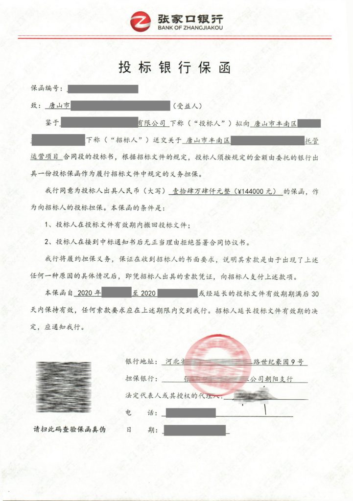 河北省张家口地区保函